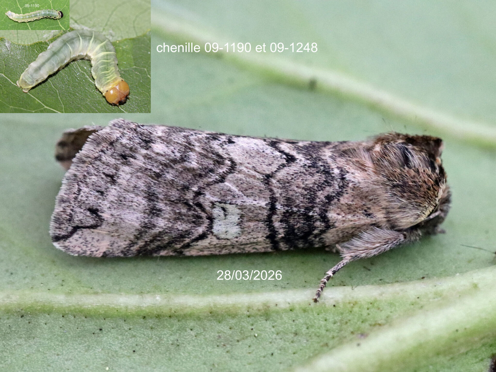 (4954/443424) DREPANIDAE, Thyatirinae, Tethea or (D & S, 1775) chenille juvénile de l’Or, la Double-Bande brune ; parc Delibes, St Sylvain d'Anjou le 2025-06-05 (chenille 09-1248 10 mm sur Populus tremula, imago le 28/03/2026) ; ident : JPC