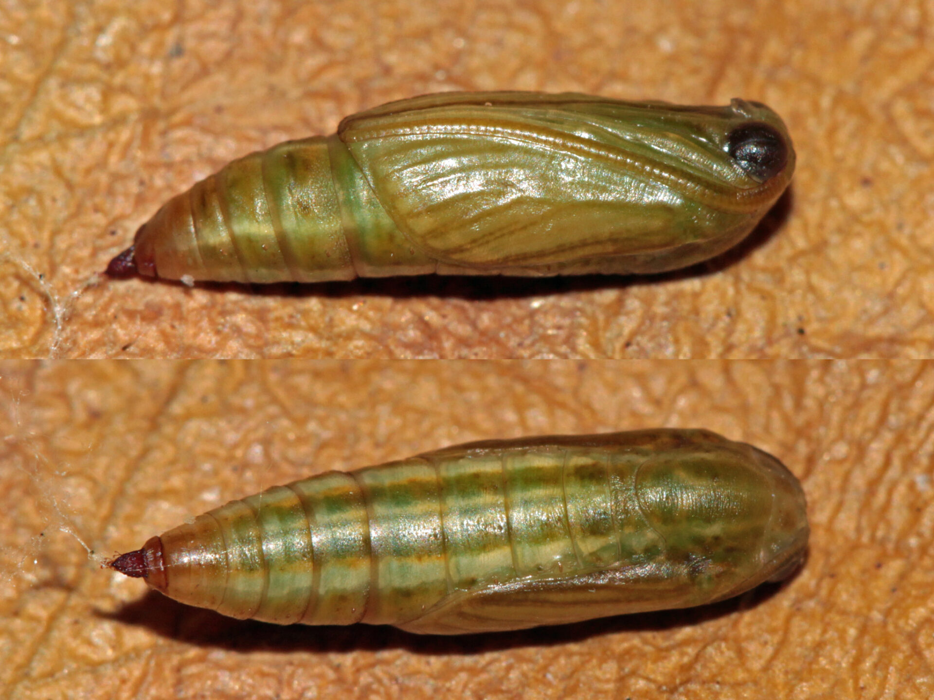 chenille 07-1992 trouvée sur sapin sp le 09/02, chrysalide le 28/02, imago les 15/03