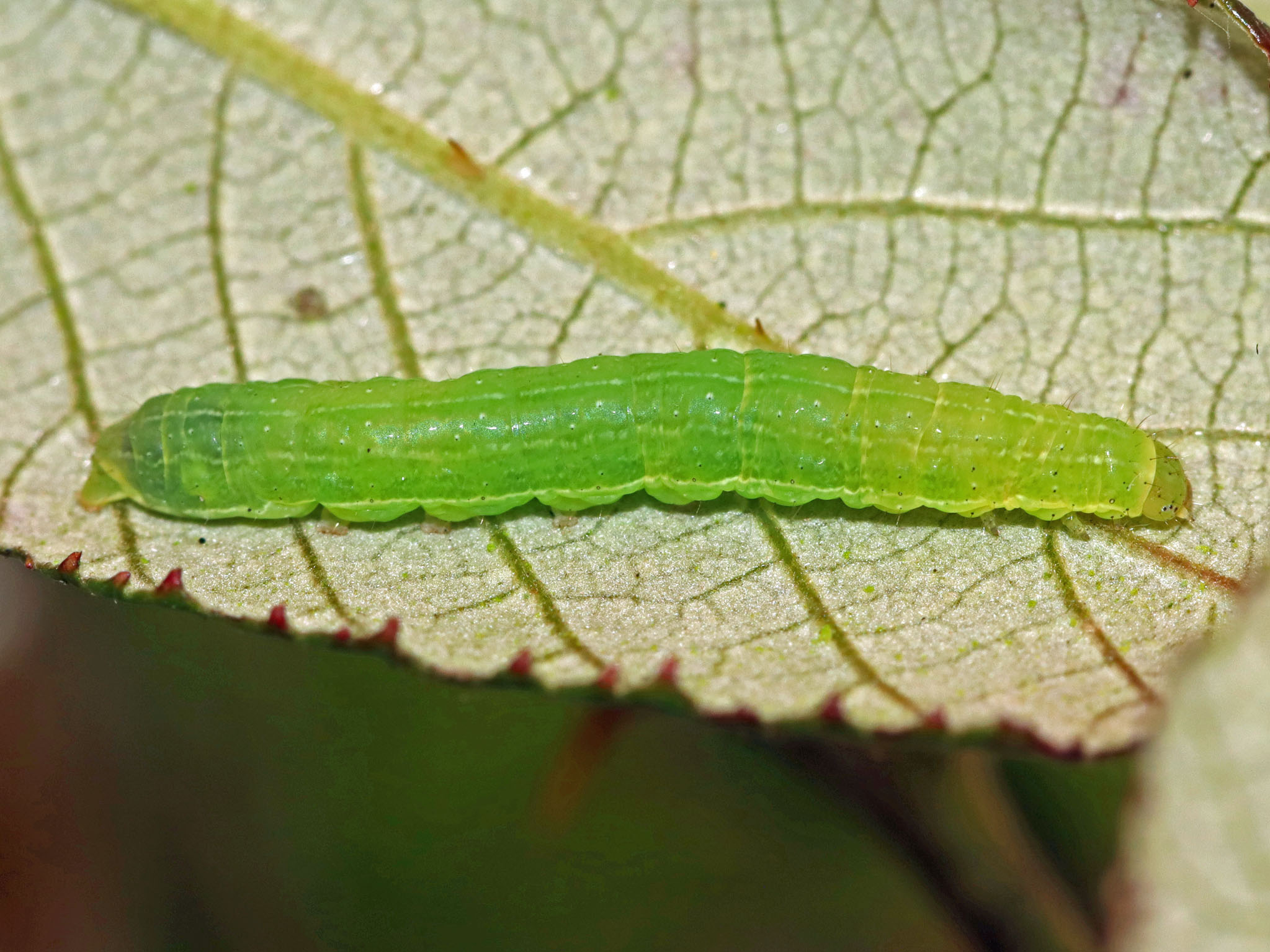 (6906/447983) NOCTUIDAE, Noctuinae, Xylenini, Trigonophora flammea (Esper, 1785) chenille de la Noctuelle embrasée ; péage de Corzé, Corzé le 2025-03-26 (trouvée sur Rubus à environ 18 mm) ; ident : JPC