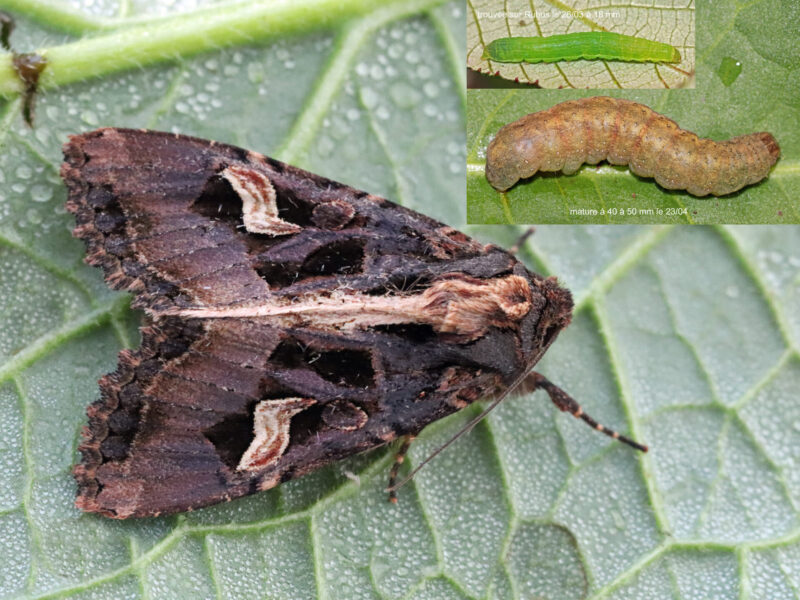 3 formes de chenilles Mniotype solieri avec leurs mues et leurs imagos correspondants