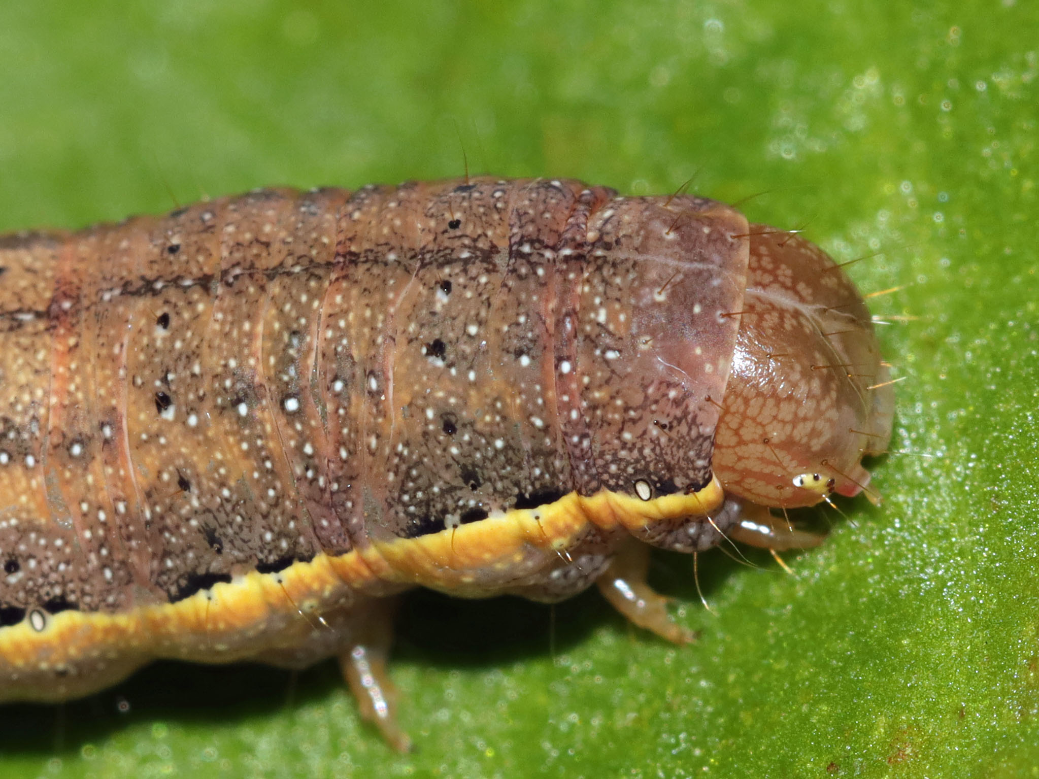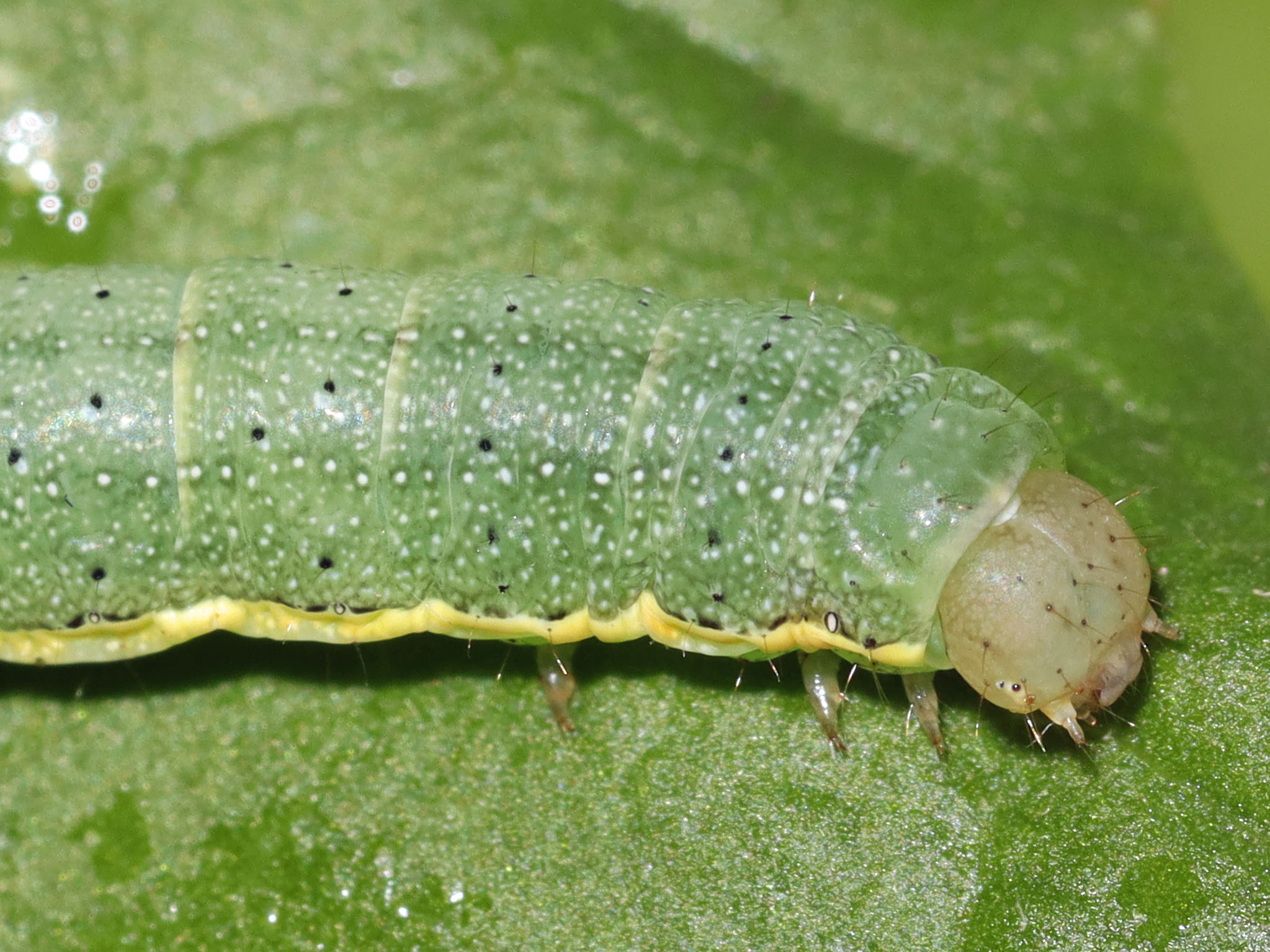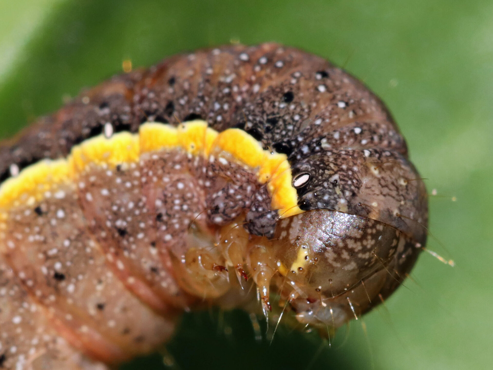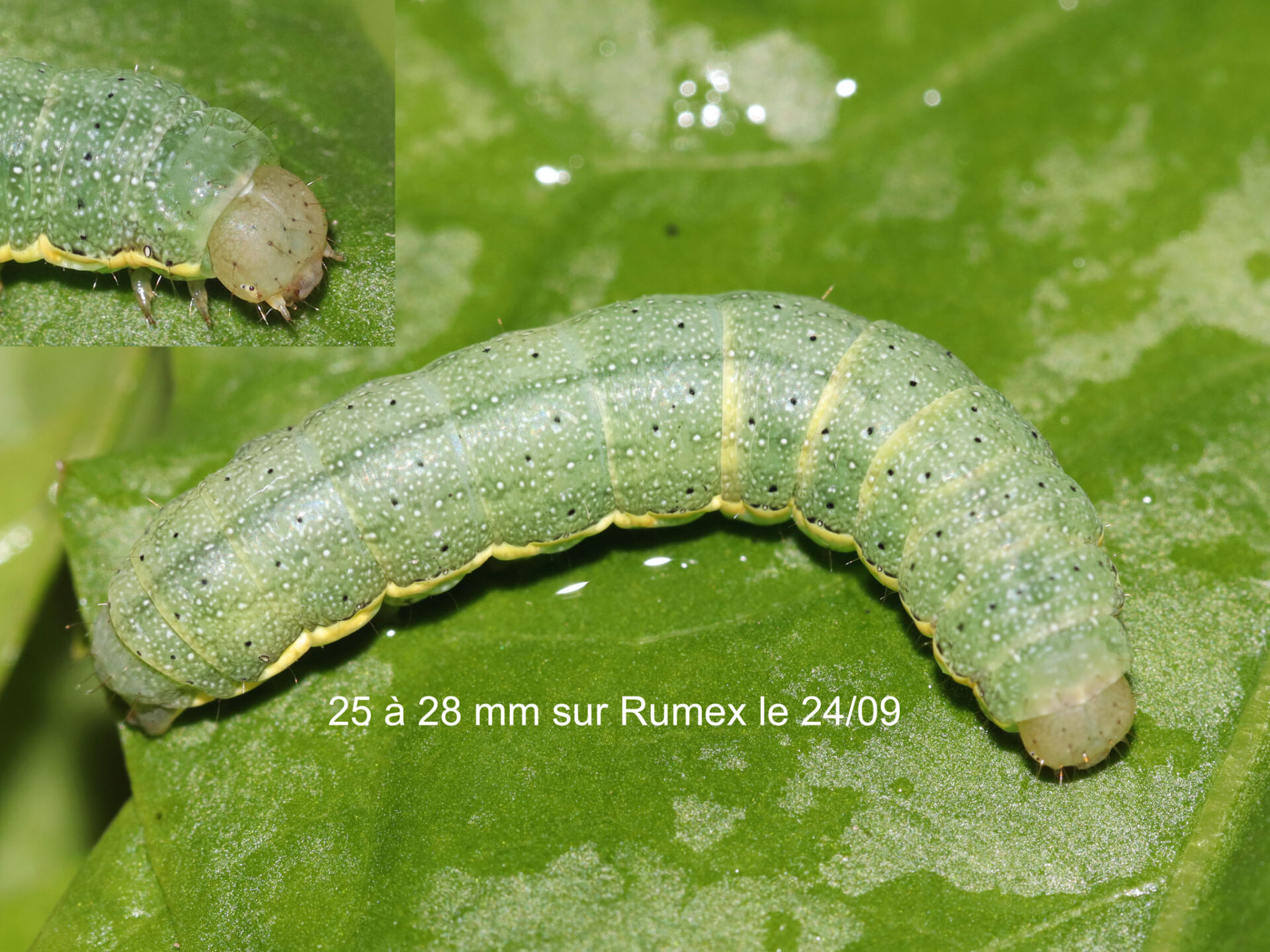 (6990/448262) NOCTUIDAE, Noctuinae, Hadenini, Lacanobia suasa (D & S, 1775) chenille de la Noctuelle enfumée, couleur de suie ; Soucelles, 49140 Rives-du-Loir-en-Anjou le 2025-09-24 (chenille 09-1601 trouvée mature sur Rumex) ; ident : JPC