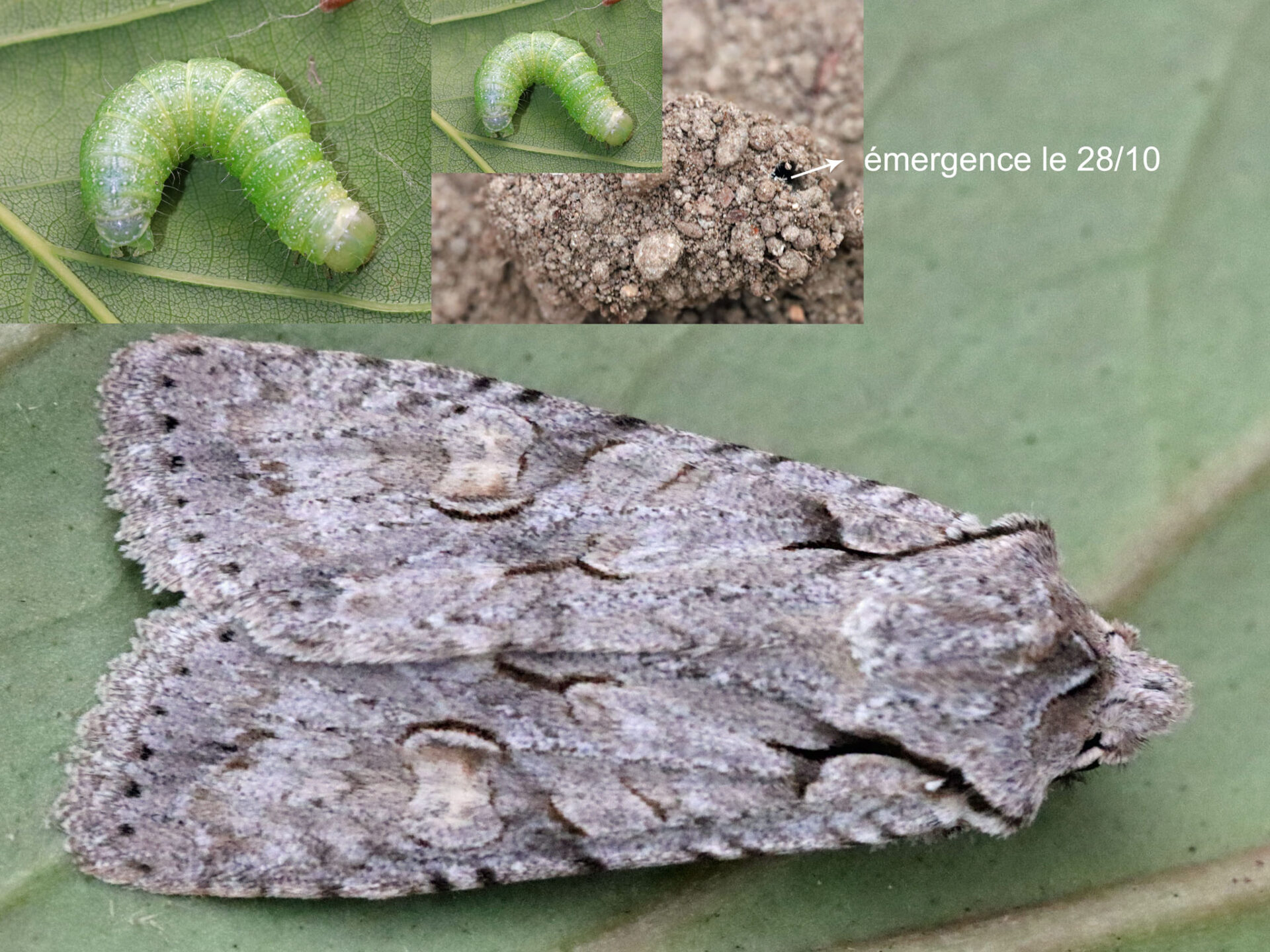 ATTENTION : bien élever la chenille seule, elle est cannibale (idem à Cosmia trapezina)