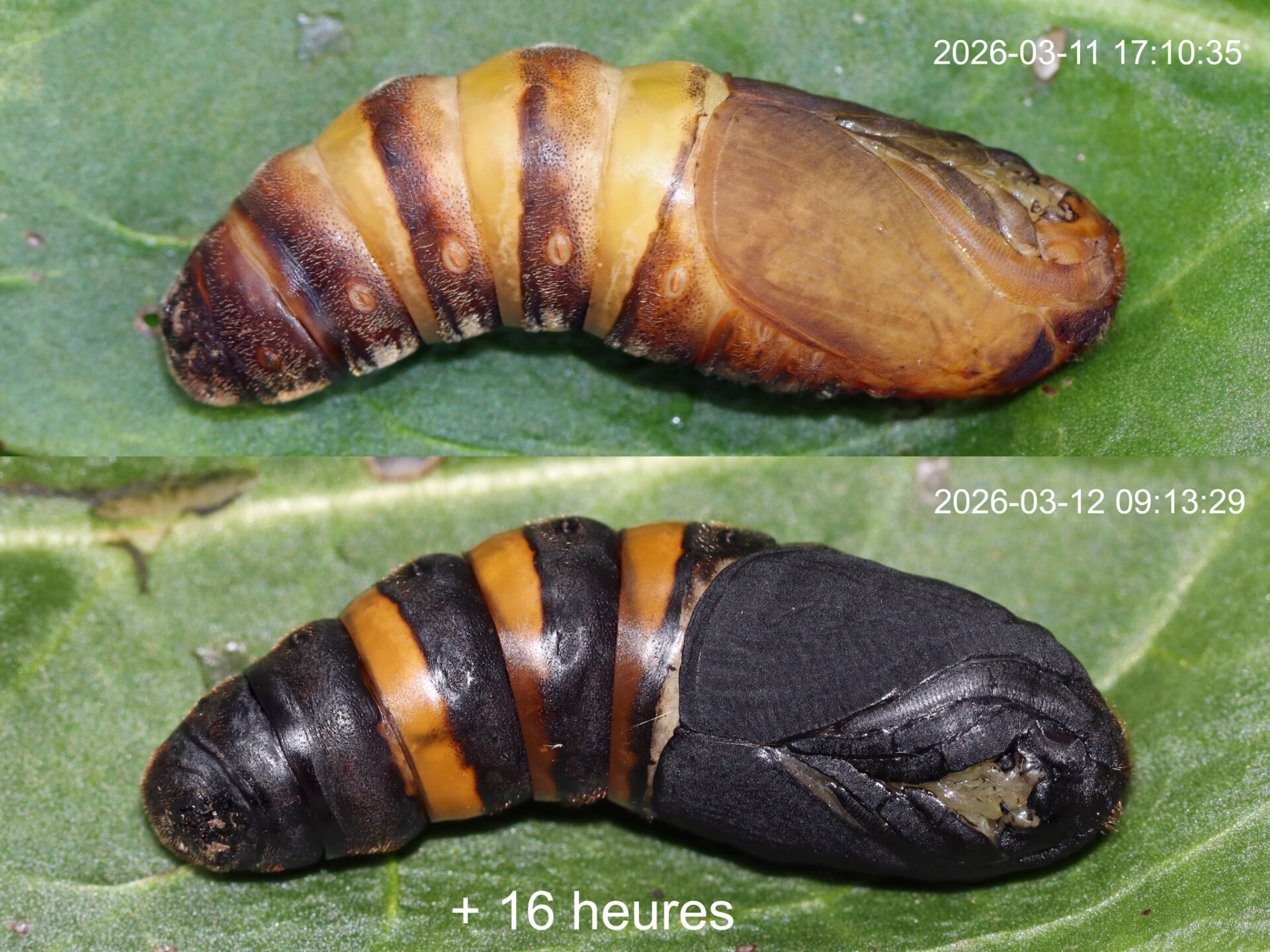Une chrysalide 1er jour le 11/03/2026