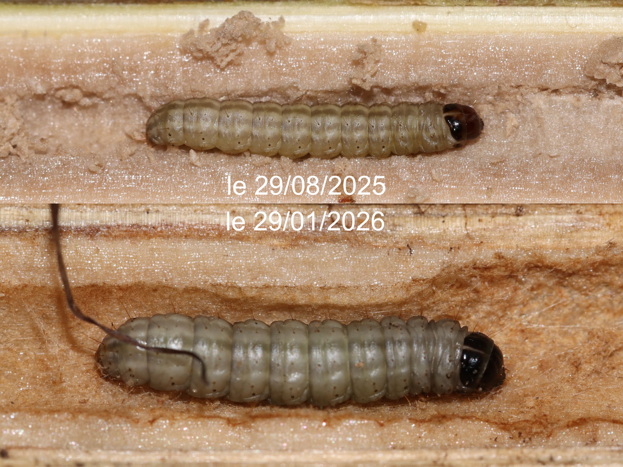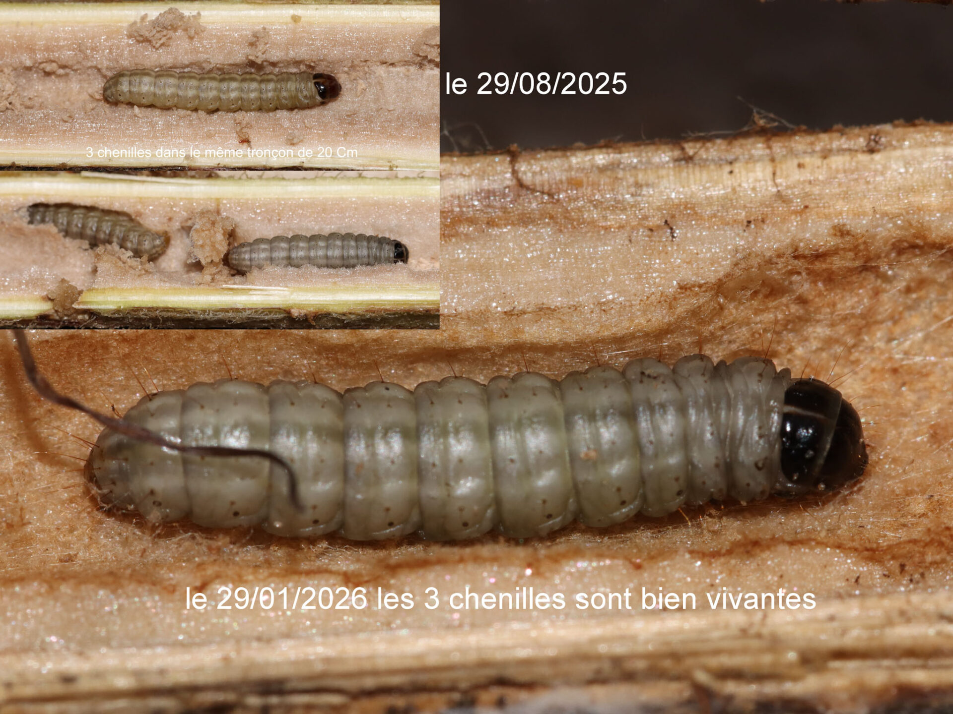 élevage 2026, après 5 mois au moins 3/8 chenilles sont vivantes