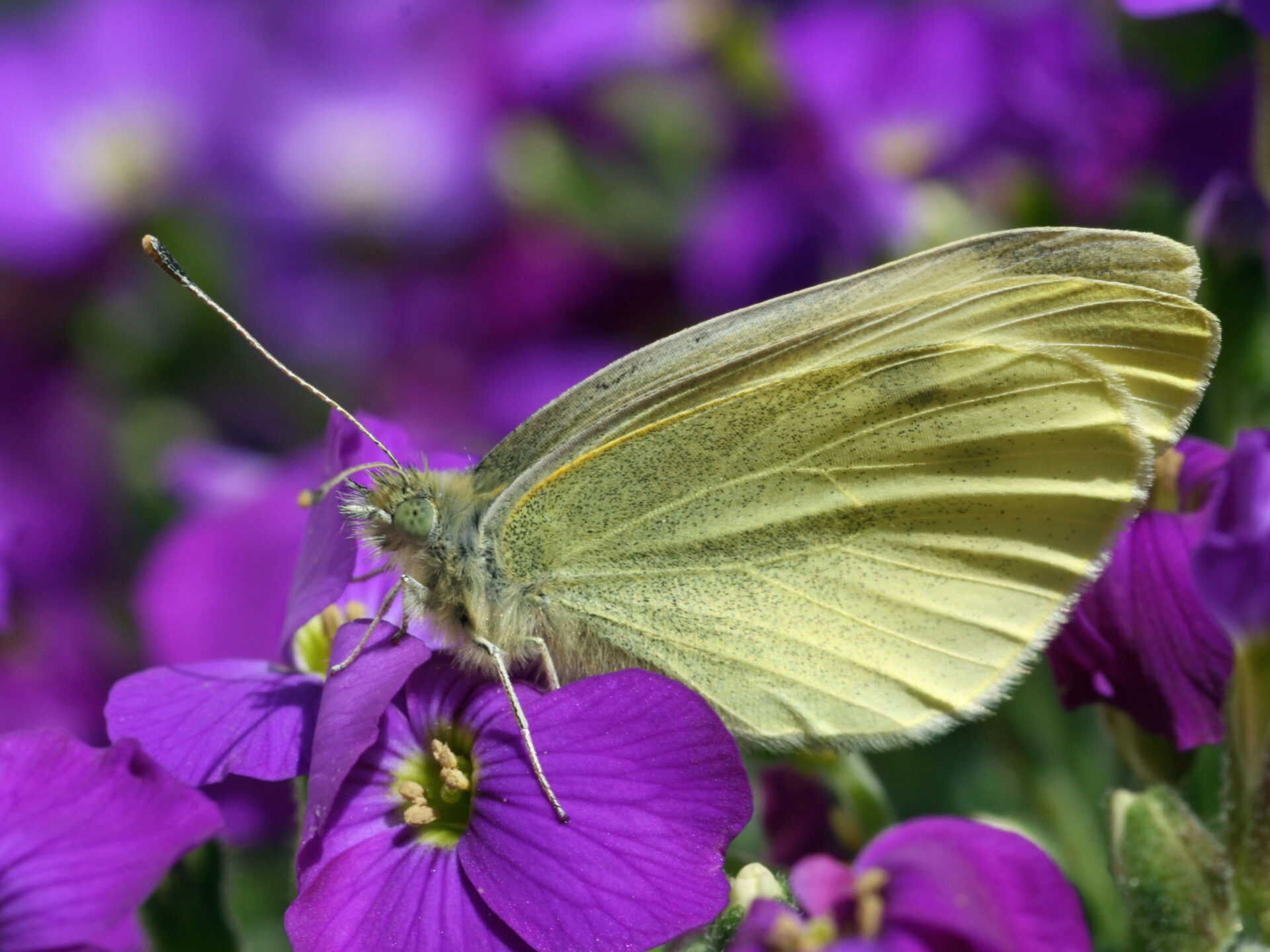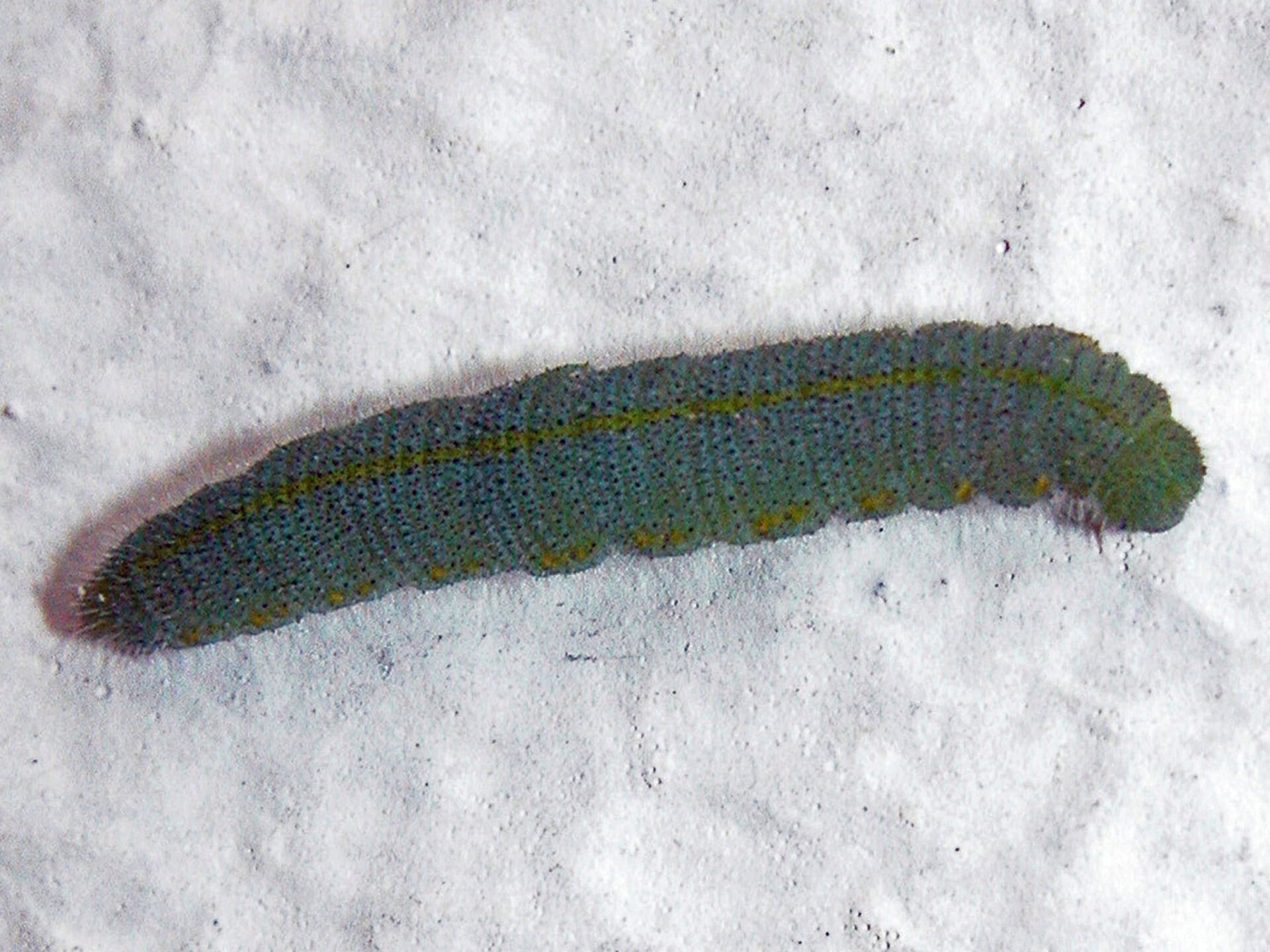 chenille sur Aubrieta deltoidea, Brassicacées, Iberis sp., Diplotaxis tenuifolia, Lobularia maritima (Alysson maritime, voir sur Wikipedia)
